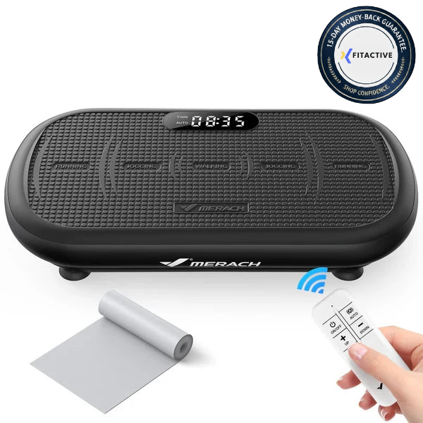 Curved ergonomic design improves posture and maximizes muscle engagement. High-power motor and 13mm amplitude deliver deep vibration for faster results. Includes resistance bands and Bluetooth speakers for full-body sessions.